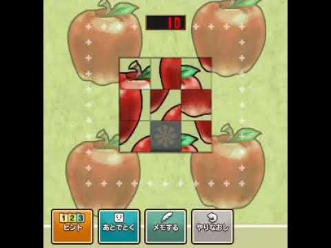 リンゴを完成させよう。真ん中に虫が見えるようにね。たった8個のパーツだけど、ちょっとむずかしいよ。